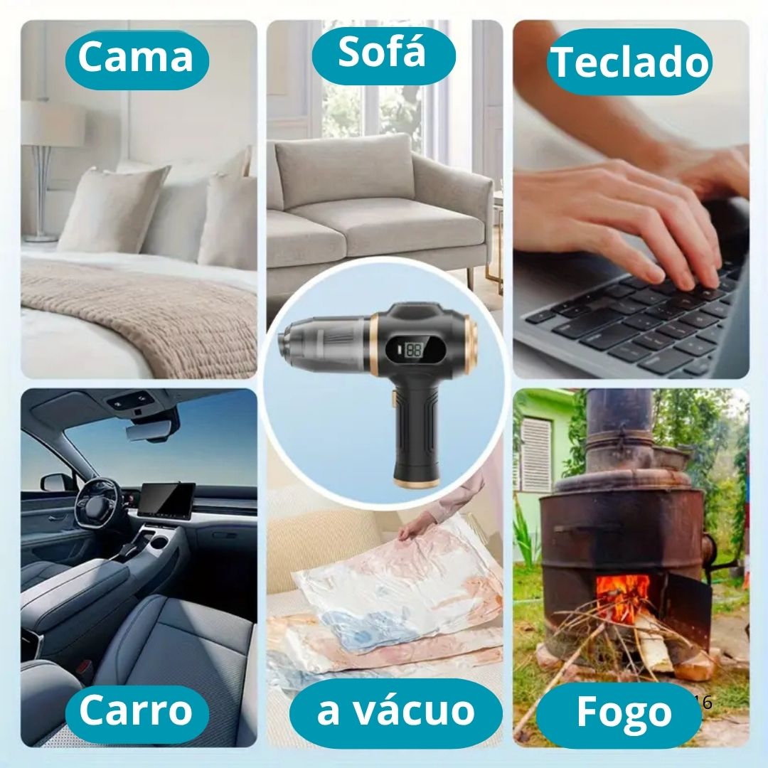 Tão potente quanto um aspirador tradicional, mas também pode ser usado como soprador e máquina de vácuo — prático para qualquer situação