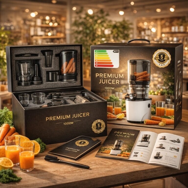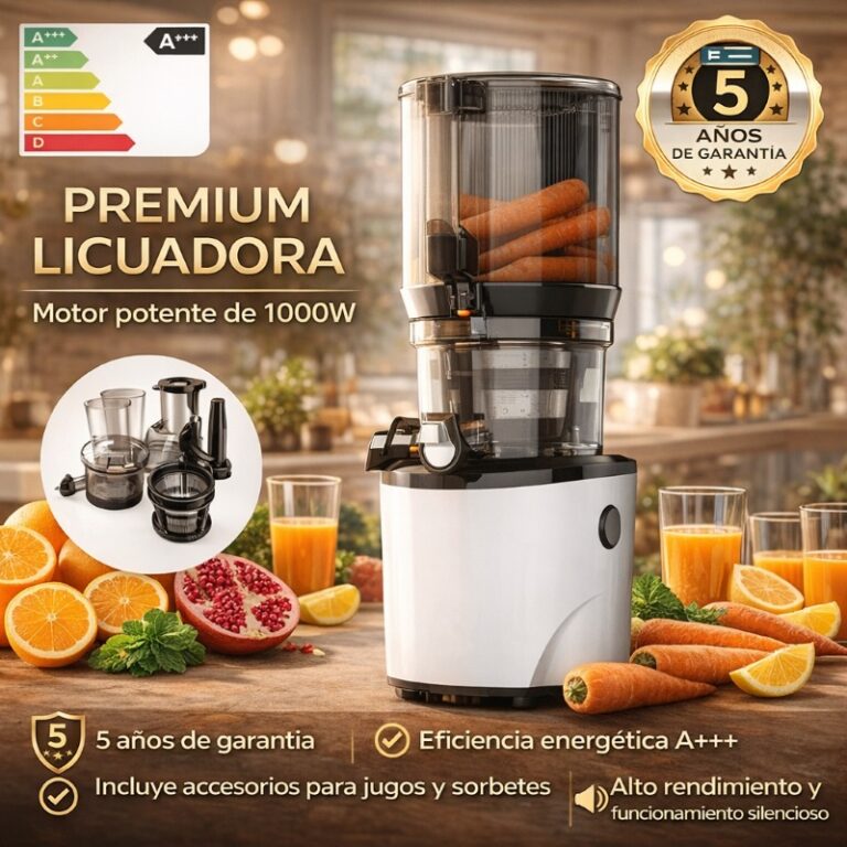 Gracias a la lenta rotación de las cuchillas de acero inoxidable y al motor de 1000 W, el sabor y el color naturales del zumo se conservan durante más tiempo.