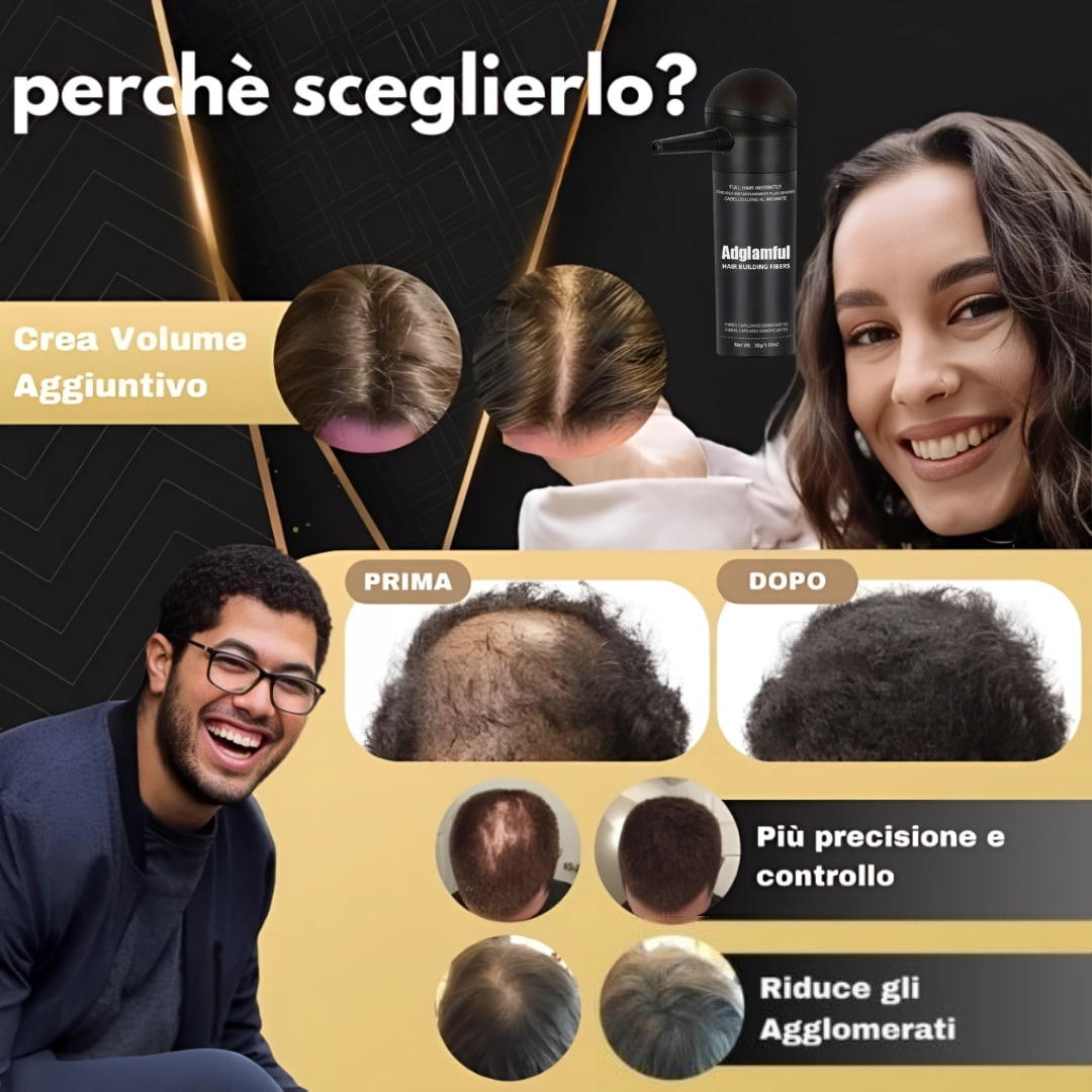 ti permette di risolvere rapidamente e facilmente i problemi di calvizie e alopecia , MA anche di chiazze dove mancano capelli. Con un’applicazione veloce, copre le aree diradate in modo naturale e discreto, donando un aspetto più pieno e voluminoso ai tuoi capelli. Non solo nasconde le imperfezioni, ma crea una texture liscia e leggera, che resiste anche alle condizioni atmosferiche più difficili. Ideale per chi cerca una soluzione pratica e immediata, questo prodotto è la risposta per avere capelli dall’aspetto sano e pieno, senza compromettere il comfort o la praticità.